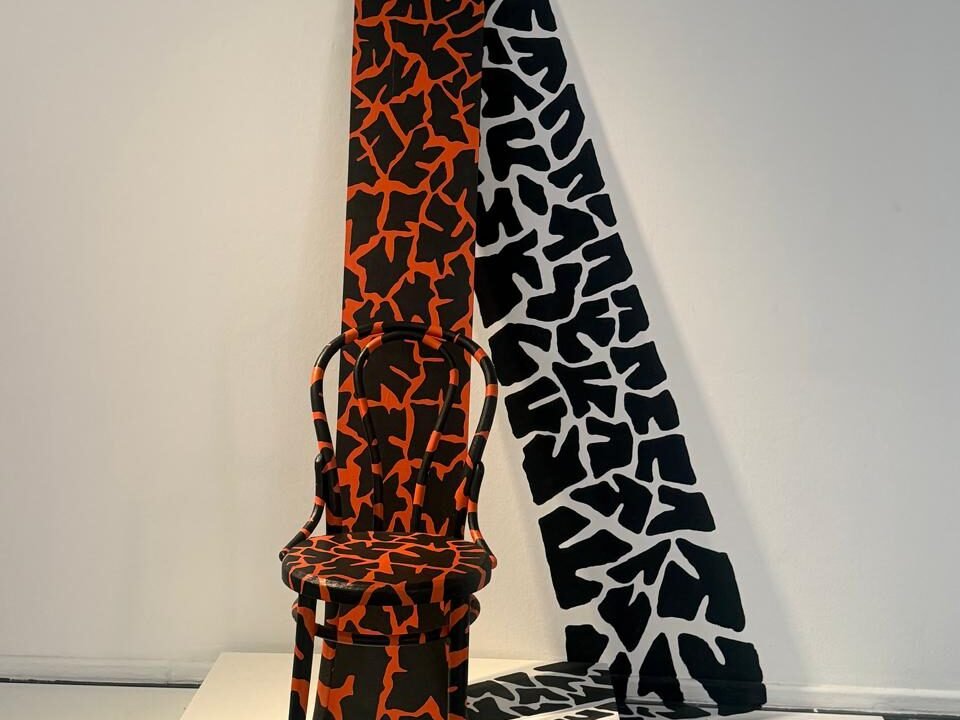 Recorrer la sala fue similar a emprender un pequeño safari cultural. Entre pinturas, objetos de diseño e instalaciones, el universo creativo de Franco desplegó un lenguaje visual cargado de tramas orgánicas, texturas animales y colores vibrantes que evocan paisajes tropicales reinterpretados desde una sensibilidad contemporánea. En este contexto, el diseño se hizo presente no solo en las obras, sino también en la disposición espacial, que permitió una lectura envolvente de la muestra.